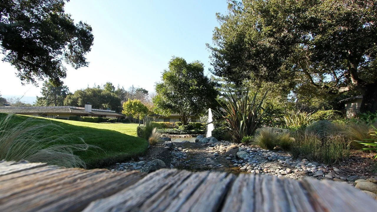 Over 19 acres of beautifully maintained grounds with heritage oak trees, calming fountains, and a meandering creek